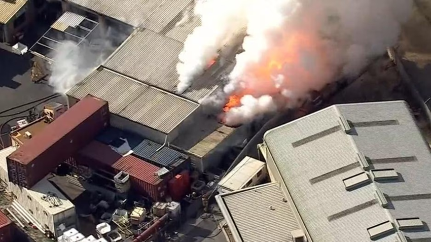حريق في مصنع لإعادة تدوير بطاريات الليثيوم - الصورة من منصة "9 نيوز"
